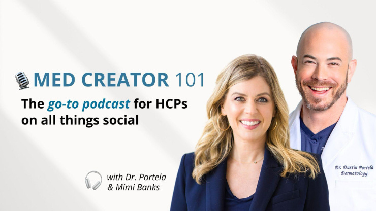 Med Creator 101 is a weekly 30-minute podcast hosted by Dr. Dustin Portela, board certified dermatologist and ‘dermfluencer’ with over 4.6M followers, and Mimi Banks, social media agency owner, to educate healthcare professionals on social media, including creating content, what tools to use, landing partnerships, and more.