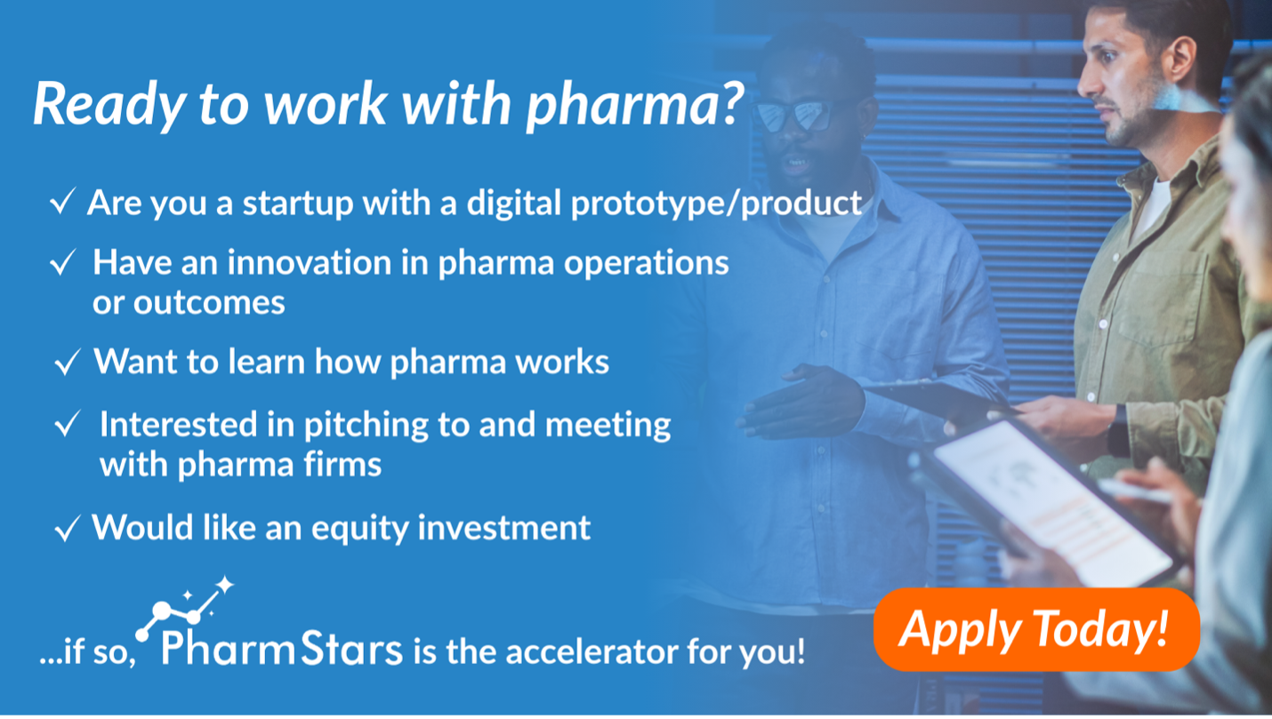 Are you a digital health startup eager to sell to pharma? Don’t miss the opportunity to participate in PharmStars’ Spring accelerator focused on “Digital Innovations in Operations & Outcomes.”